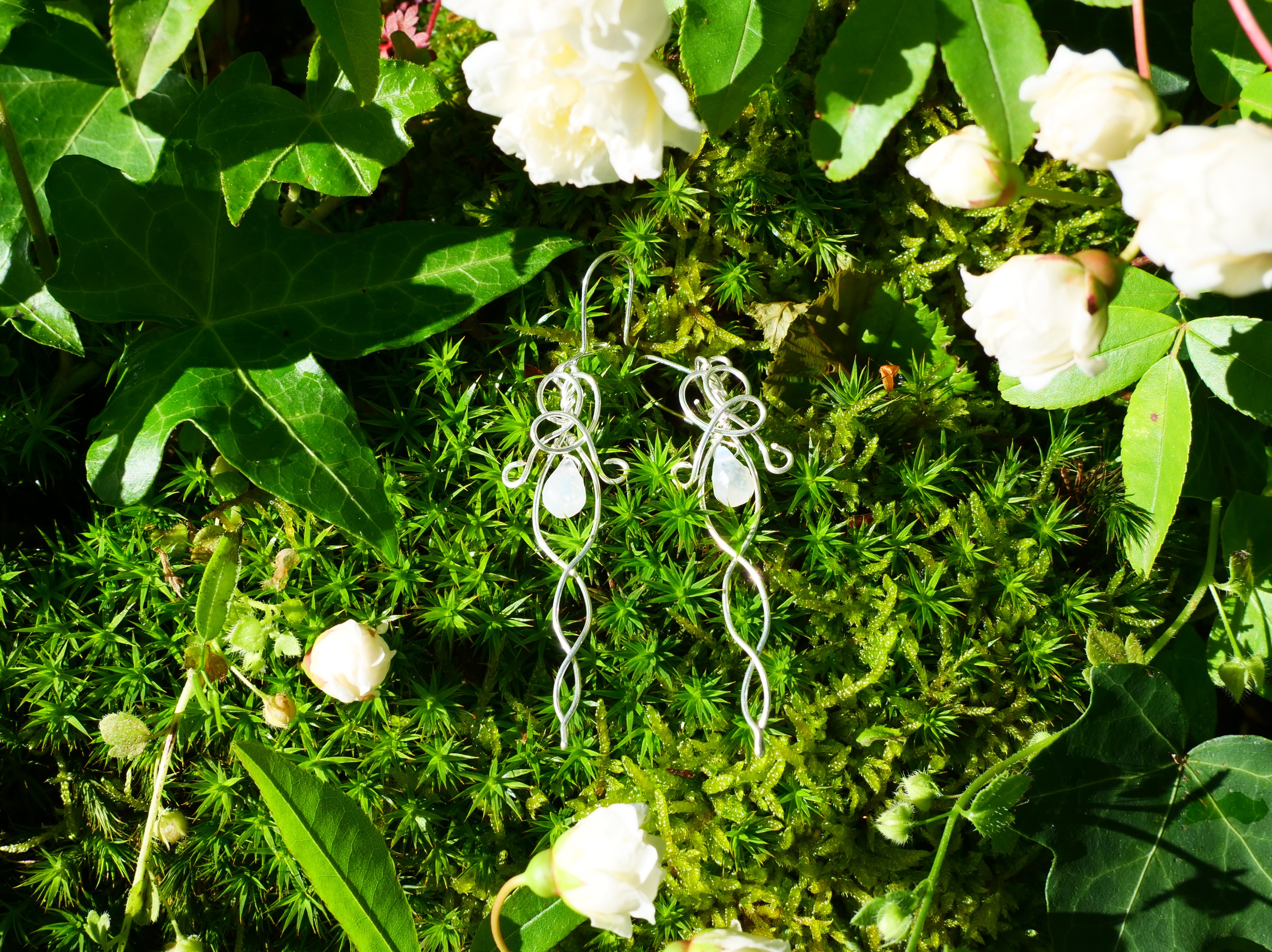 Boucles d'oreilles créés avec 2 perles facetées de labradorite blanche.