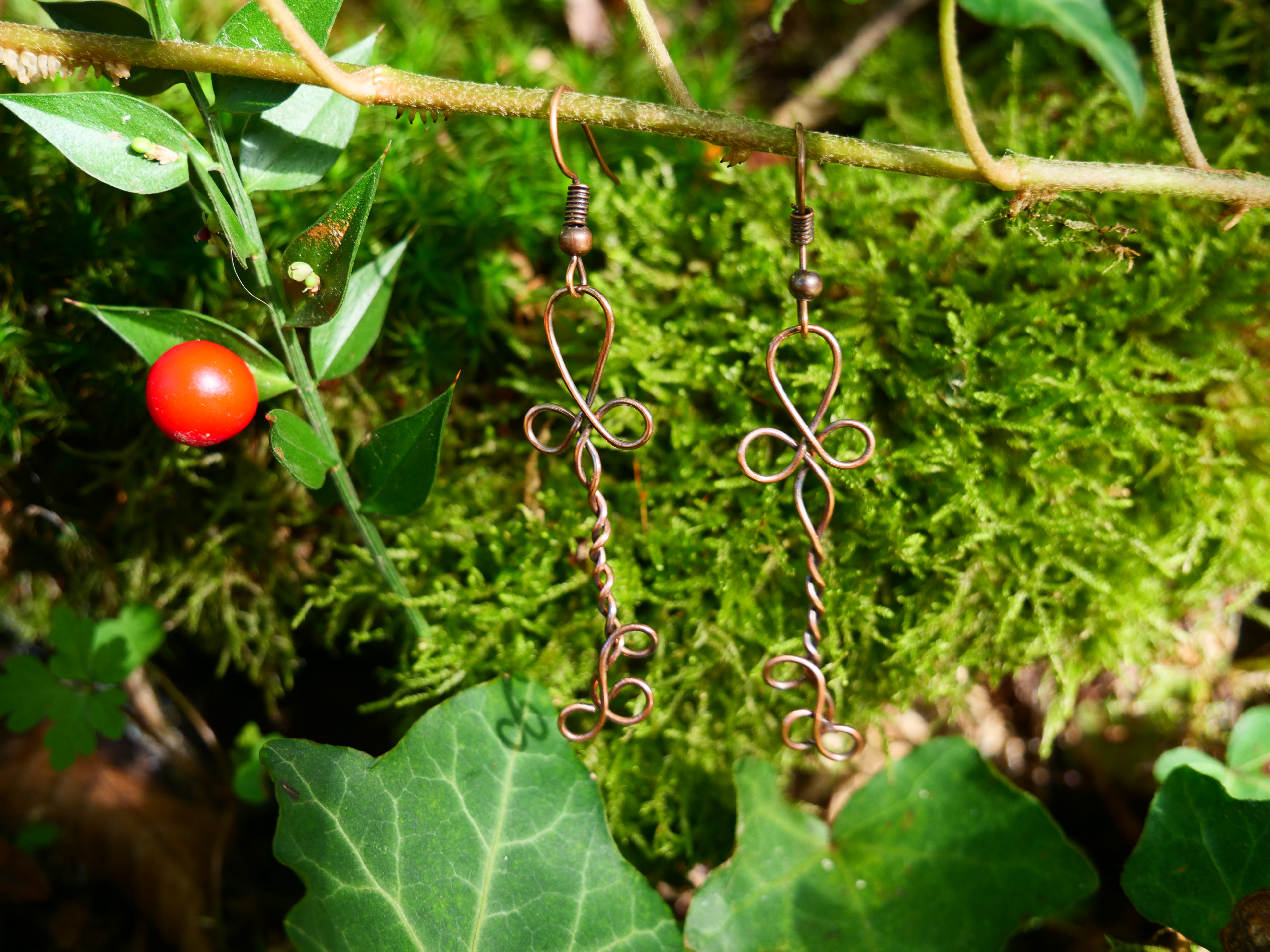 Boucles d'oreilles créés en fil de cuivre vieilli, sans nickel / plomb / cadmium, (il changera de teinte naturellement dans le temps).